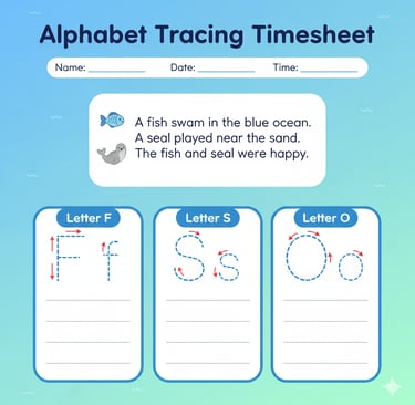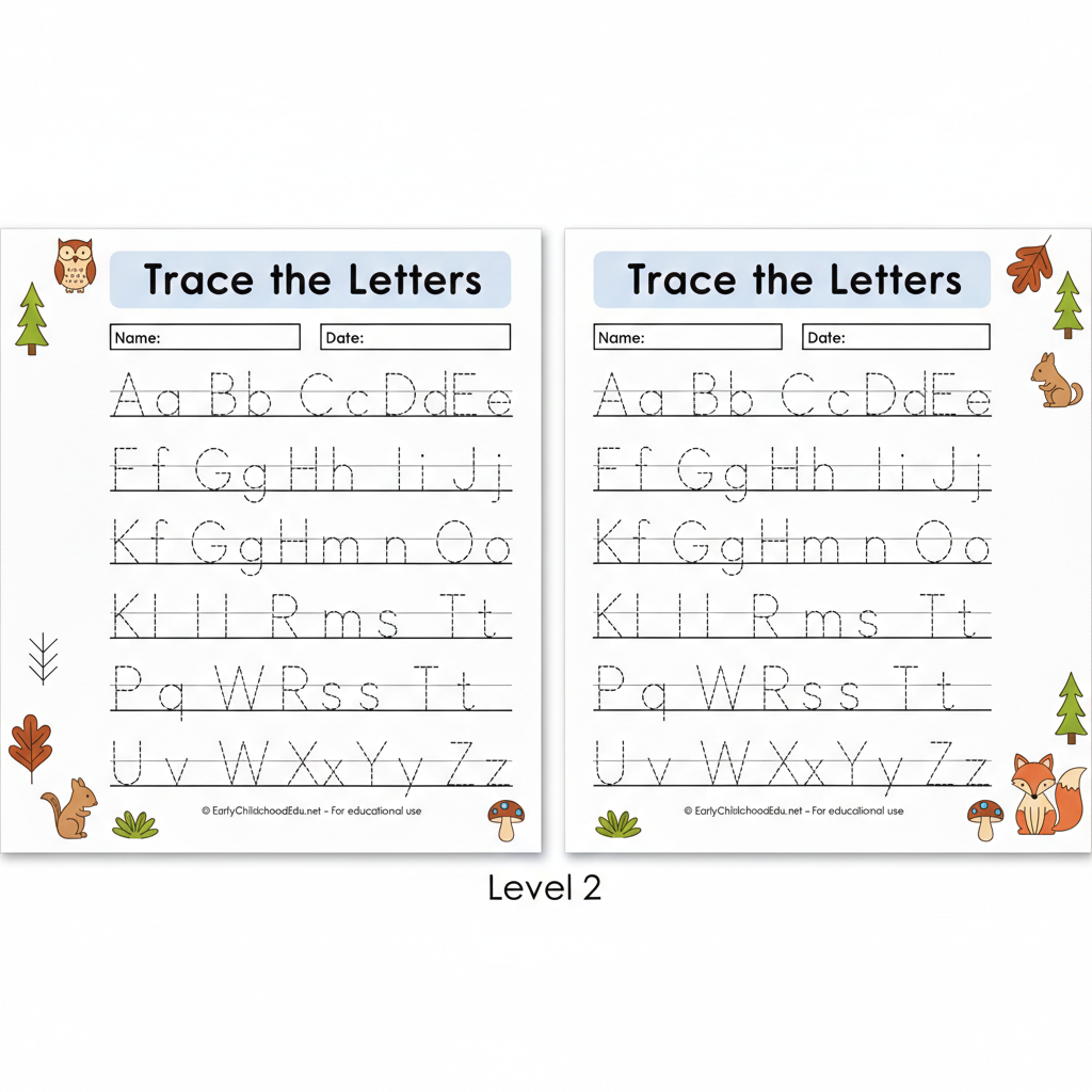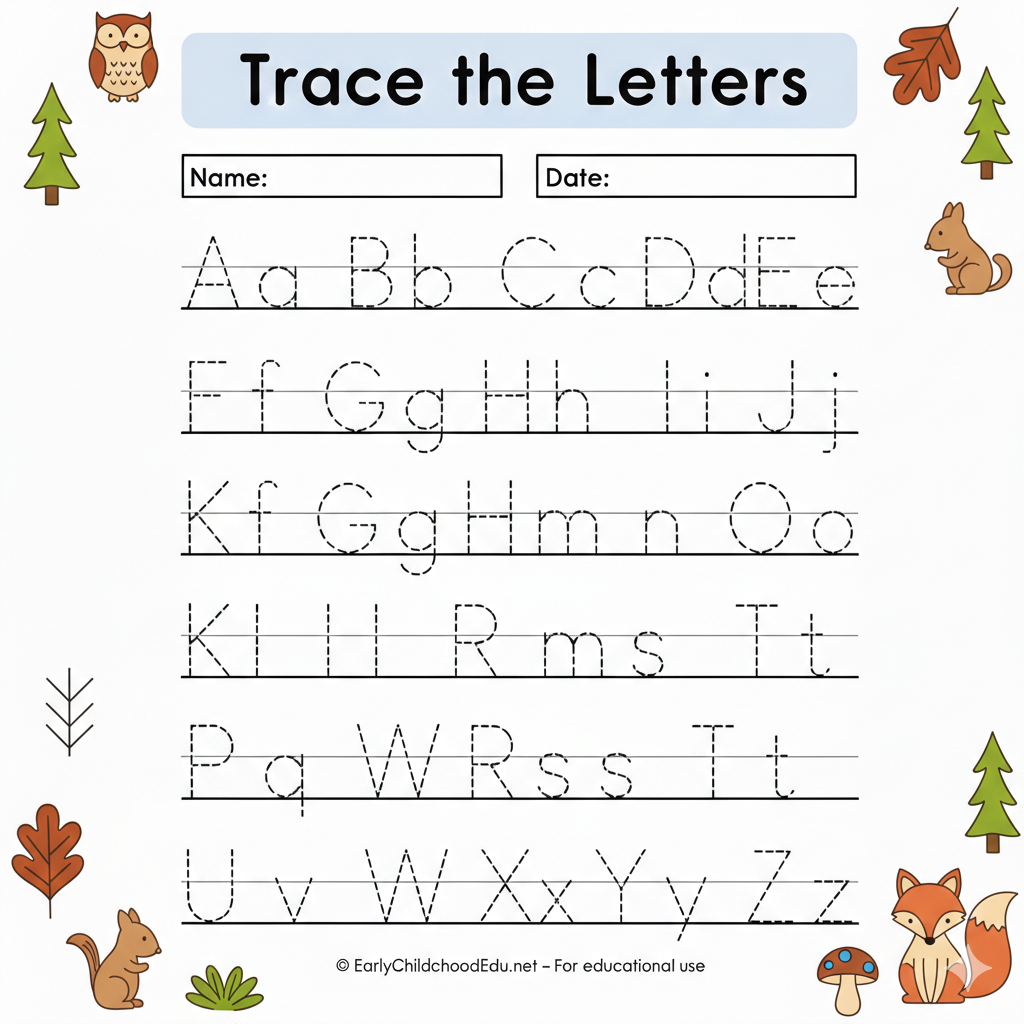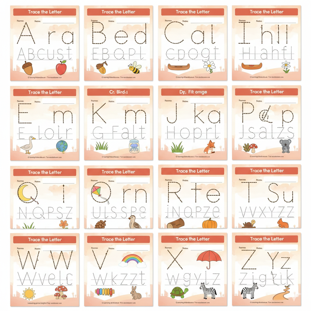 A–Z Alphabet Tracing Template with Cute Icons for Kids
