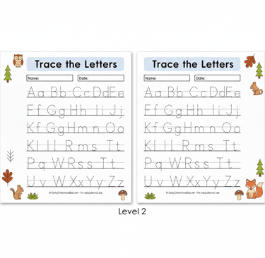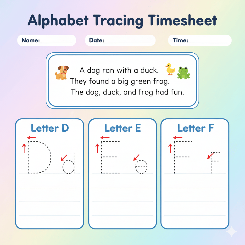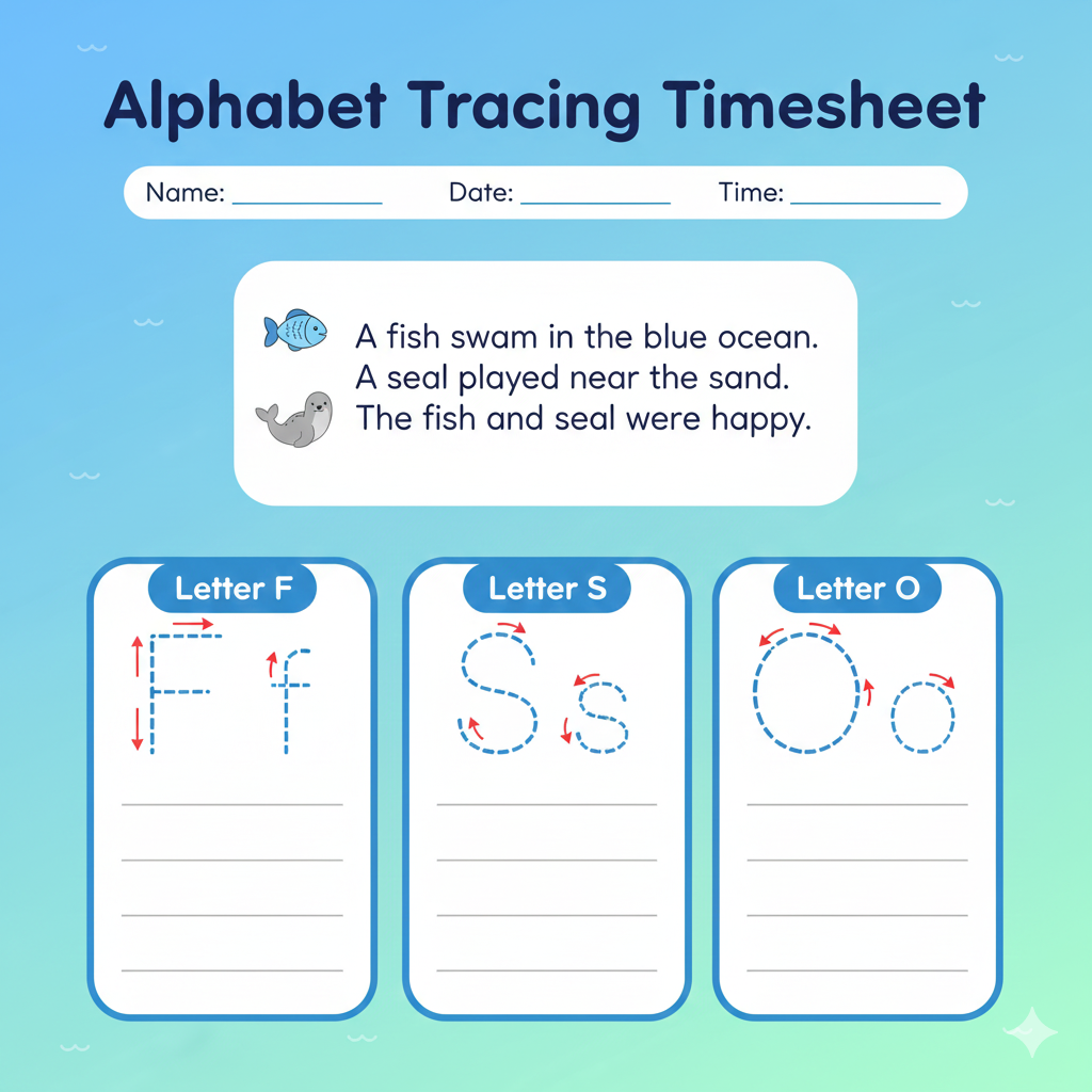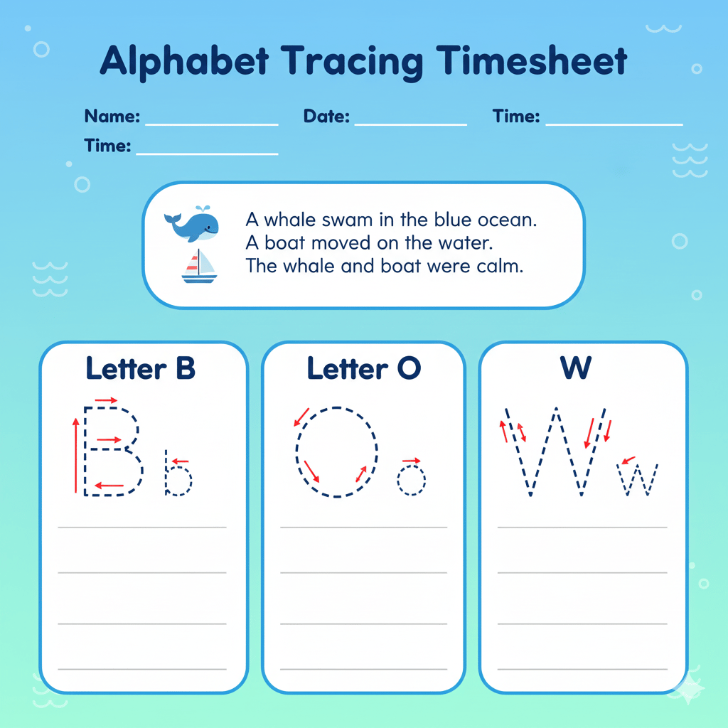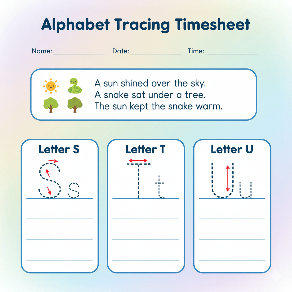 A–Z Alphabet Tracing Template with Cute Icons for Kids